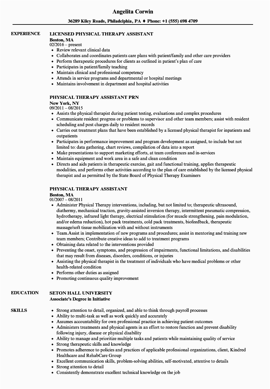 The uses of resume template for physical therapist assistant downloads are re limitless! You are bound to locate the perfect template that will keep you time, pay for you a professional appearance, and depart a lasting impression to land the interview.
