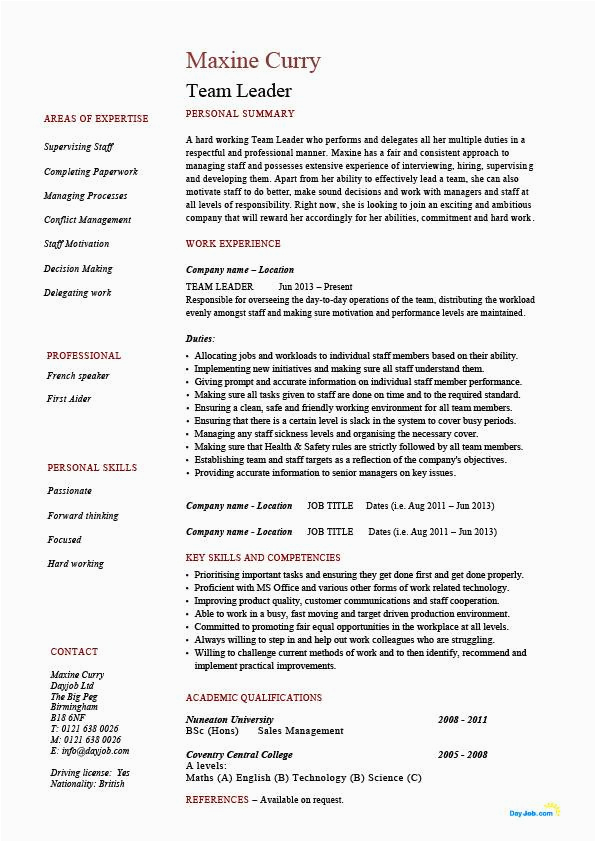 Resume Template for Team Lead Position downloads can be a lifesaver behind you look how compliant they can be. The encourage of using them are numerous. They keep time, give fine formatting, presentation, and can back you puff yourself professionally. The idea of promotion is creating a lasting impression. Your resume markets you!