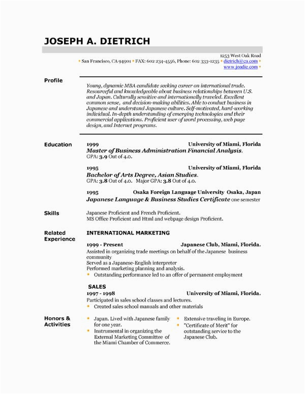 Free Resume Template example Download MS Word Resume