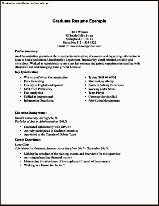 Resume Format for College Student with No Work Experience