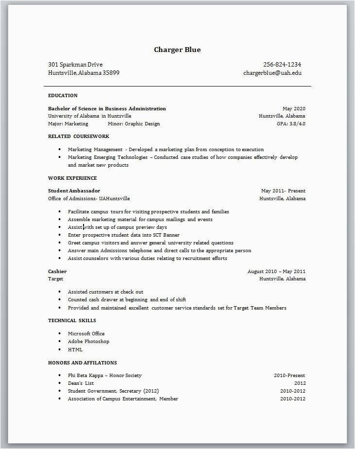 Sample Resume for A College Student with No Experience