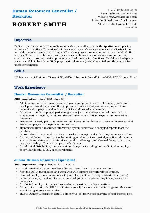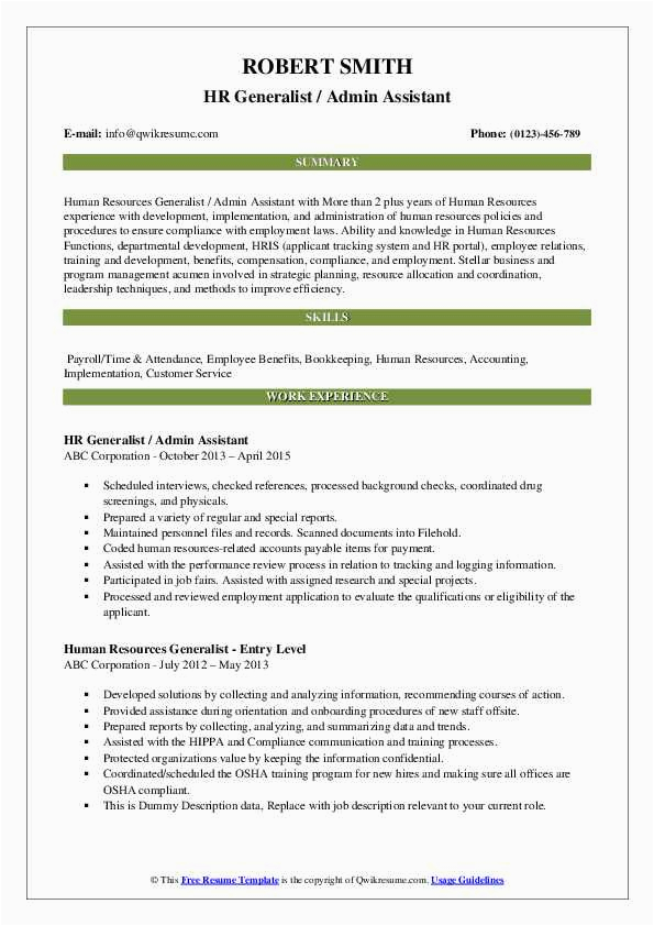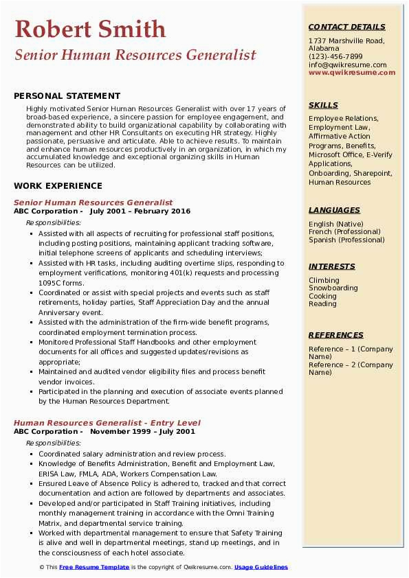 Resume Templates for Human Resources Generalist downloads can be a lifesaver subsequently you look how helpful they can be. The support of using them are numerous. They keep time, meet the expense of fine formatting, presentation, and can back up you make public yourself professionally. The idea of marketing is creating a lasting impression. Your resume markets you!
