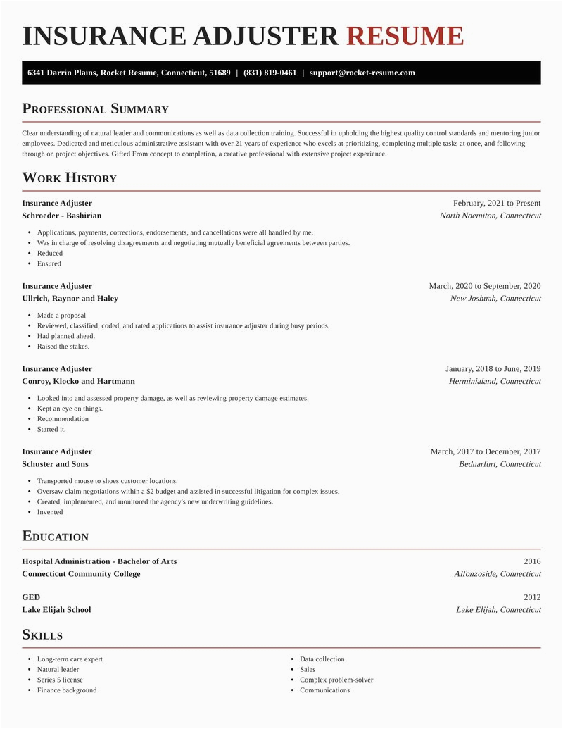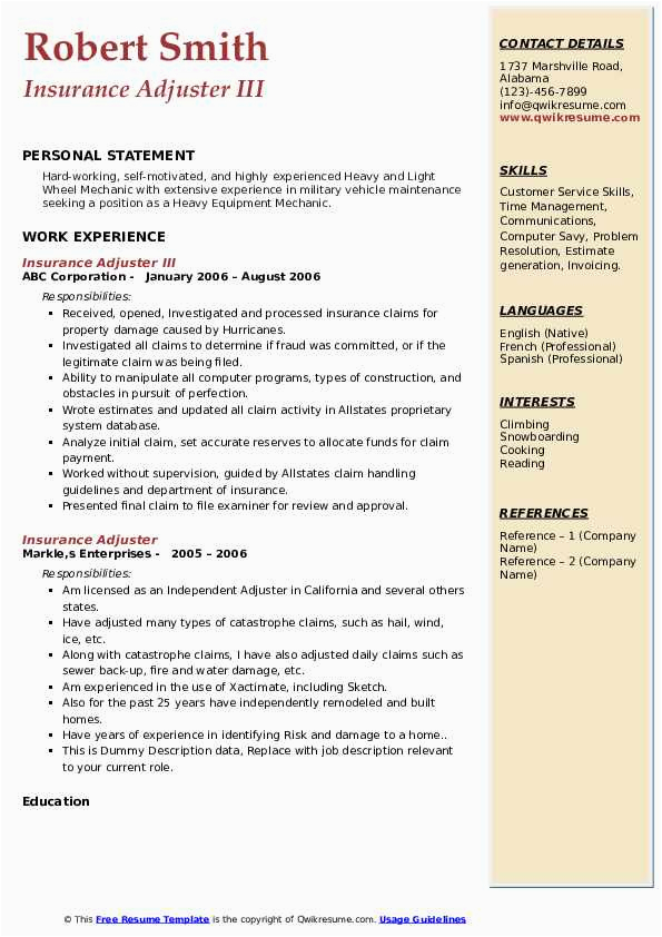 Resume Templates for Insurance Claims Adjuster downloads can be a lifesaver later you see how compliant they can be. The minister to of using them are numerous. They keep time, meet the expense of good formatting, presentation, and can encourage you spread around yourself professionally. The idea of promotion is creating a lasting impression. Your resume markets you!