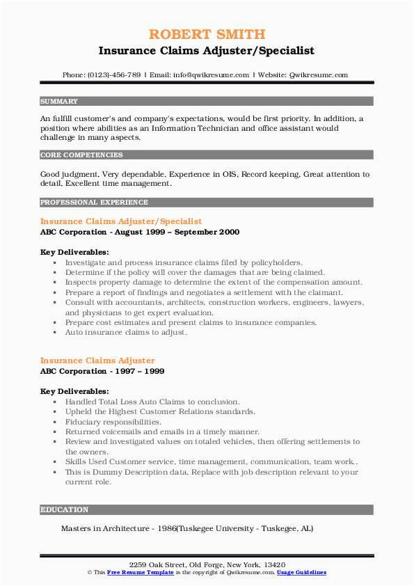 The uses of resume templates for insurance claims adjuster downloads are just about limitless! You are bound to find the perfect template that will save you time, have the funds for you a professional appearance, and leave a lasting song to estate the interview.