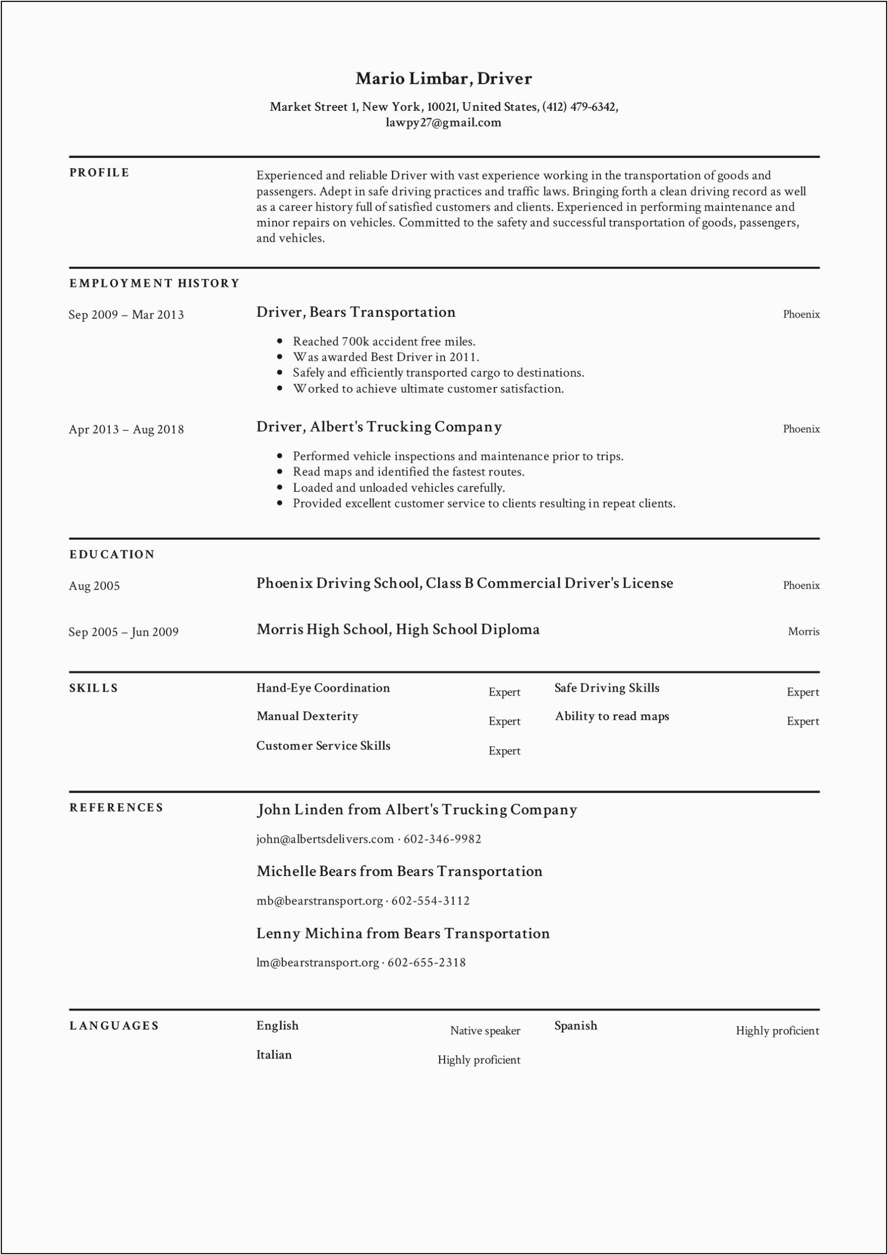 Free Truck Driver Resume Template