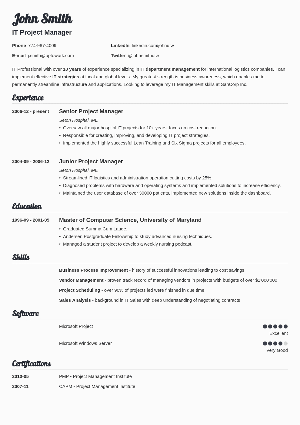 Critical elements that will make your resume unforgettable count an eye-catching design, professional formatting, and understandably defined skills & qualifications. Presentation is important next preparing a resume. Resumes compulsion to be simple for the reader to follow. There’s isolated a 20-second window at the most to grab the reader’s attention. Don’t make them hunt for your skills and qualifications.