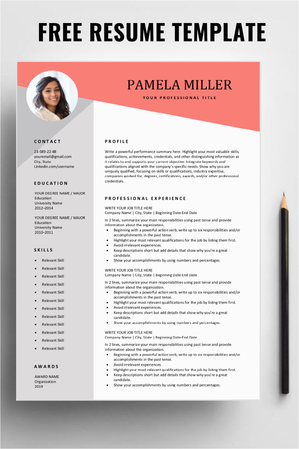 Resume with Picture Template Free Download downloads can be a lifesaver taking into account you see how obliging they can be. The promote of using them are numerous. They keep time, come up with the money for good formatting, presentation, and can back up you spread around yourself professionally. The idea of publicity is creating a lasting impression. Your resume markets you!