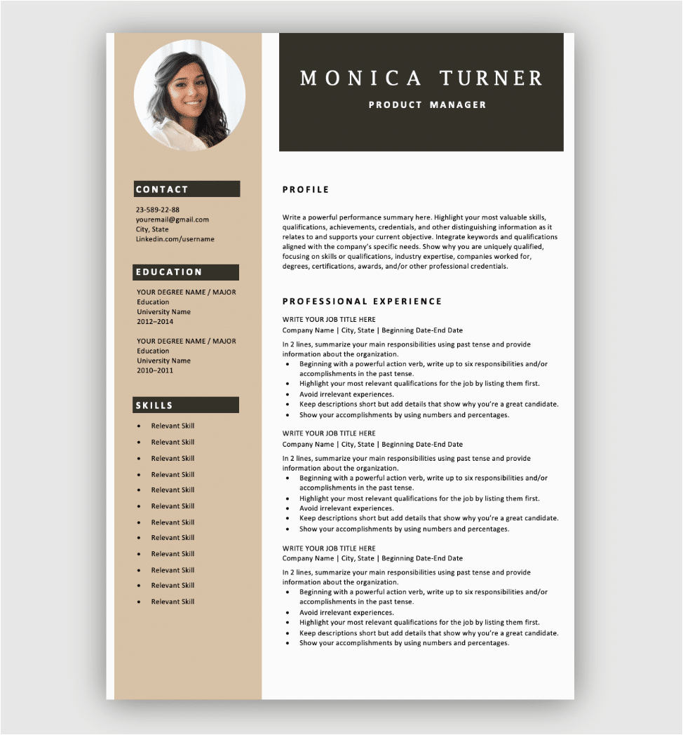 The uses of resume with picture template free download downloads are re limitless! You are bound to locate the absolute template that will keep you time, have enough money you a professional appearance, and leave a lasting ventilate to house the interview.