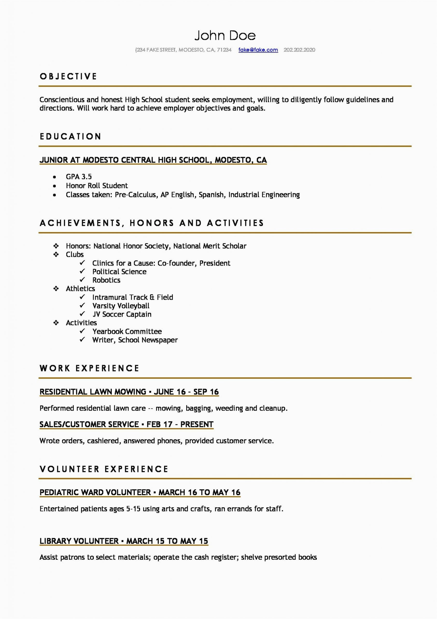 Resume Examples for High School Students Student Resume