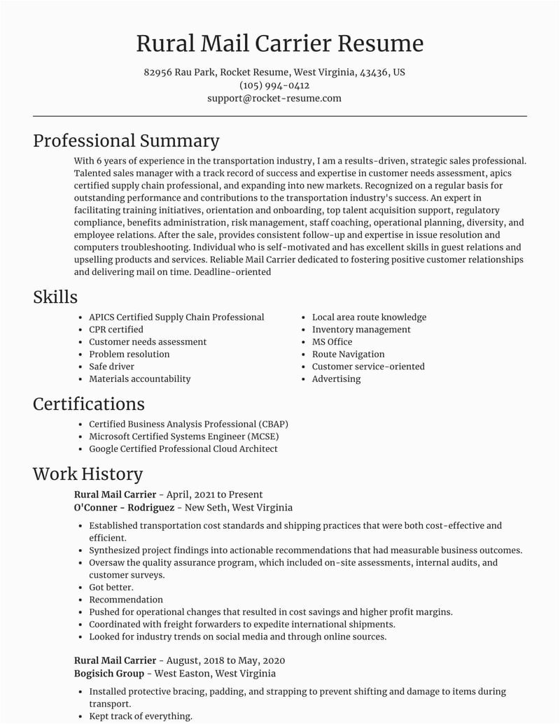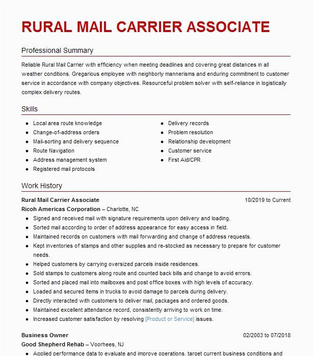 9 photos of the Rural Carrier for Postal Service Sample Resume