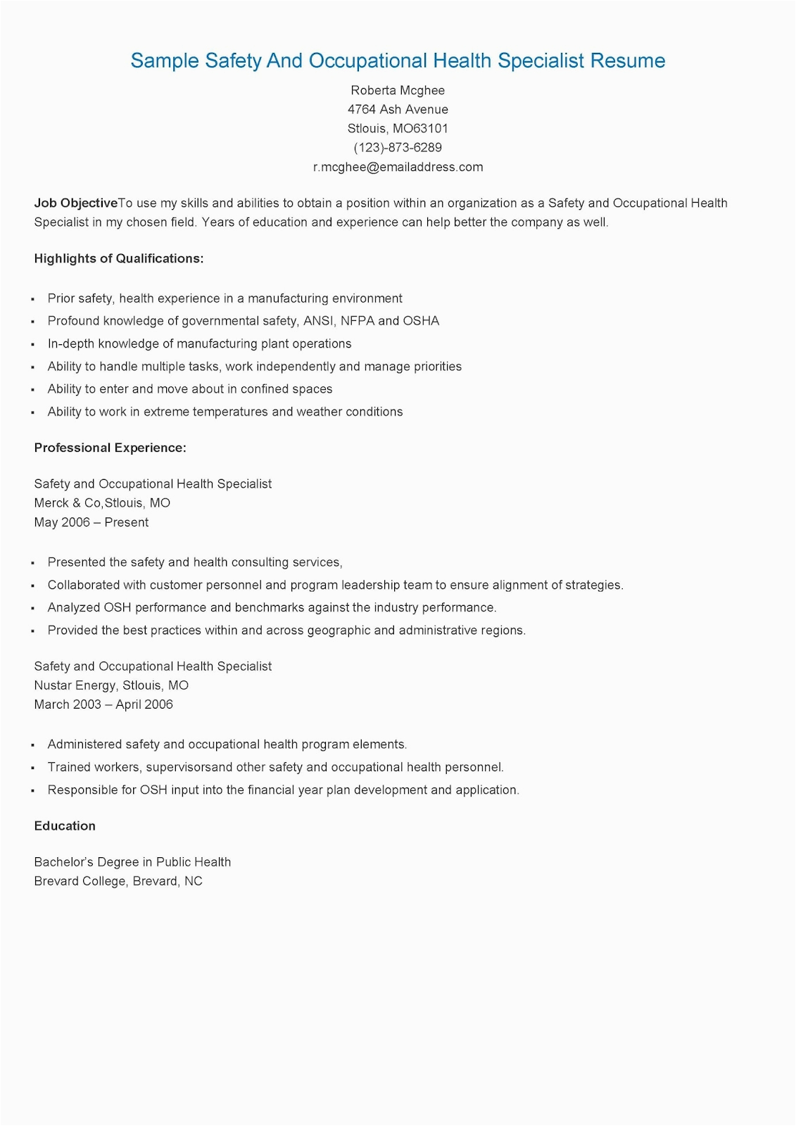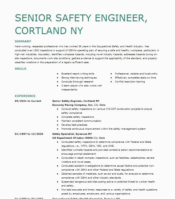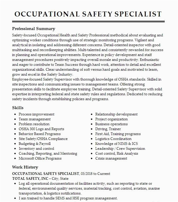 9 photos of the Safety and Occupational Health Specialist Sample Resume