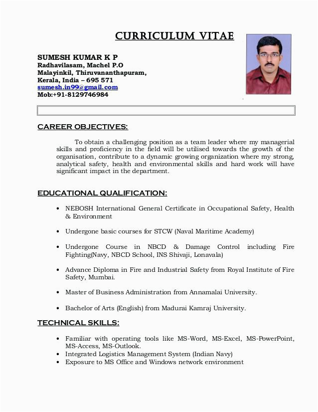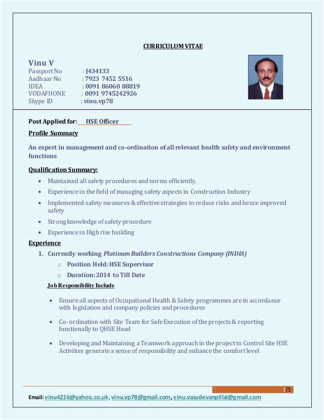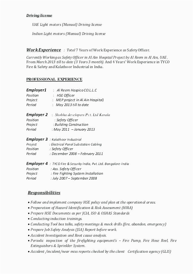 Safety ficer Fresher Cv Format