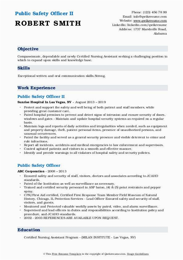 Public Safety ficer Resume Samples