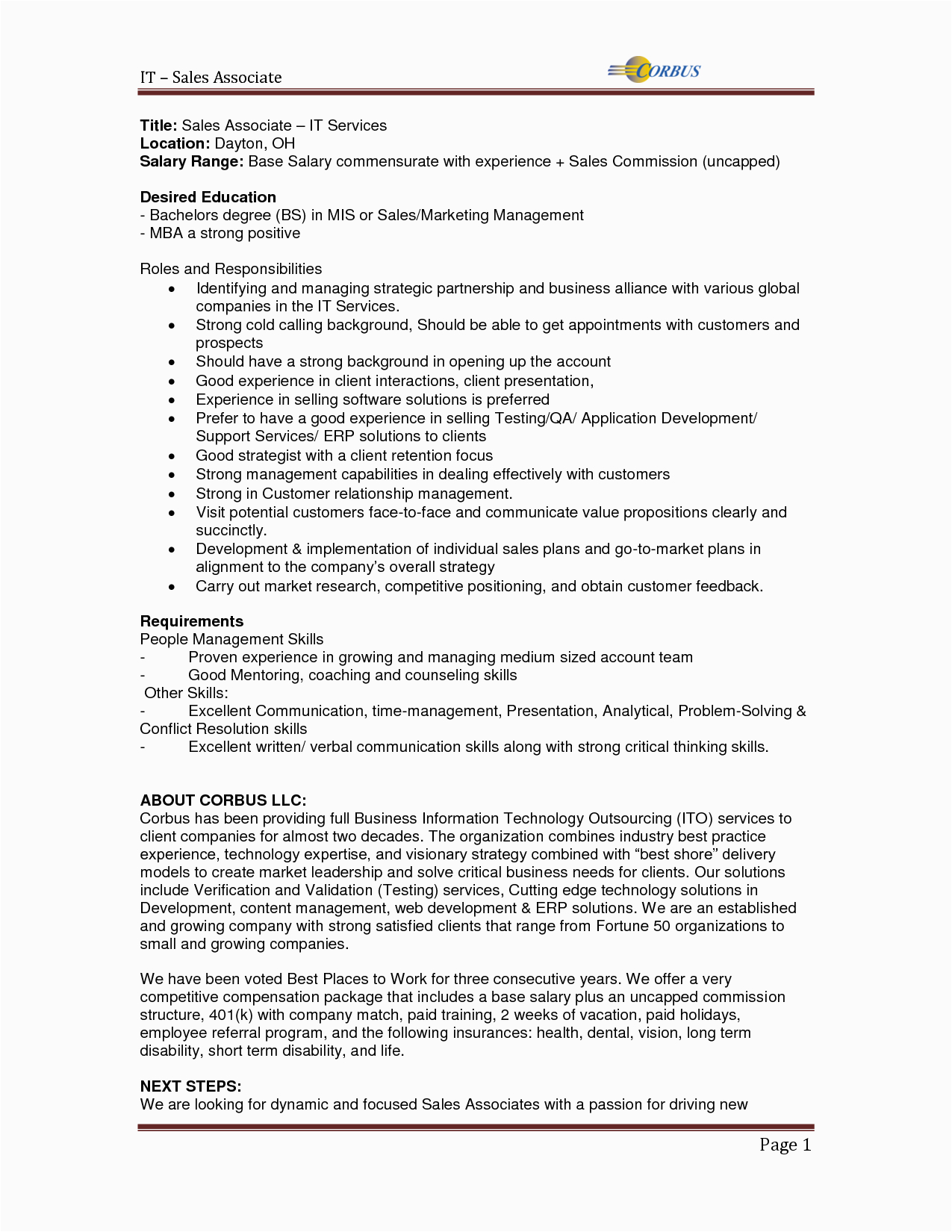 as soon as you are searching for the perfect job, you will of course desire to put your best foot adopt following an fabulous and well-formatted resume. One artifice of assuring that you have such a resume is to download a sales associate job description resume samples. These templates can have enough money you as soon as the perfect resume you are looking for or helpfully use them as a guide to make your own.