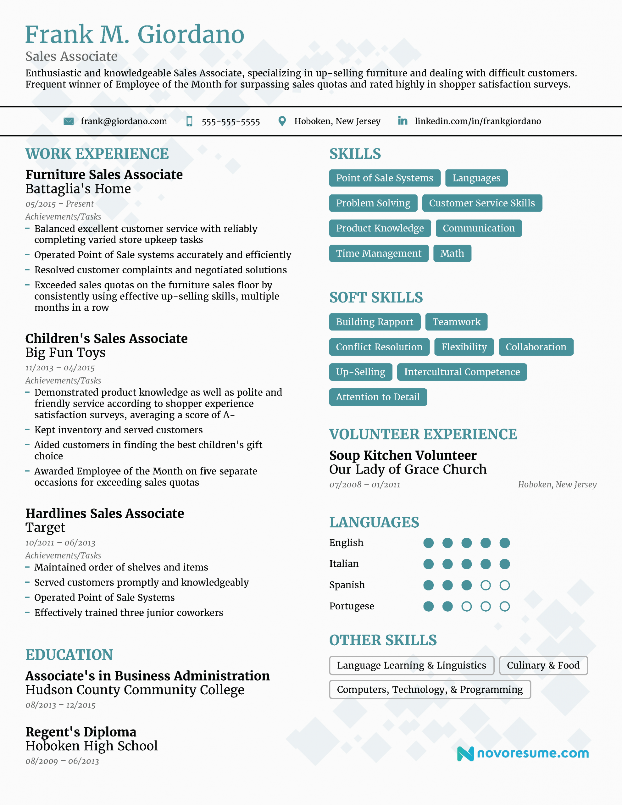 And for all website you come across that has a sales associate job description resume samples, you will find that there are specialized templates for just approximately any type of resume you wish to create. You can locate a sales associate job description resume samples for an entry-level position, and you can locate a template for just virtually any type of job or career you are looking for.