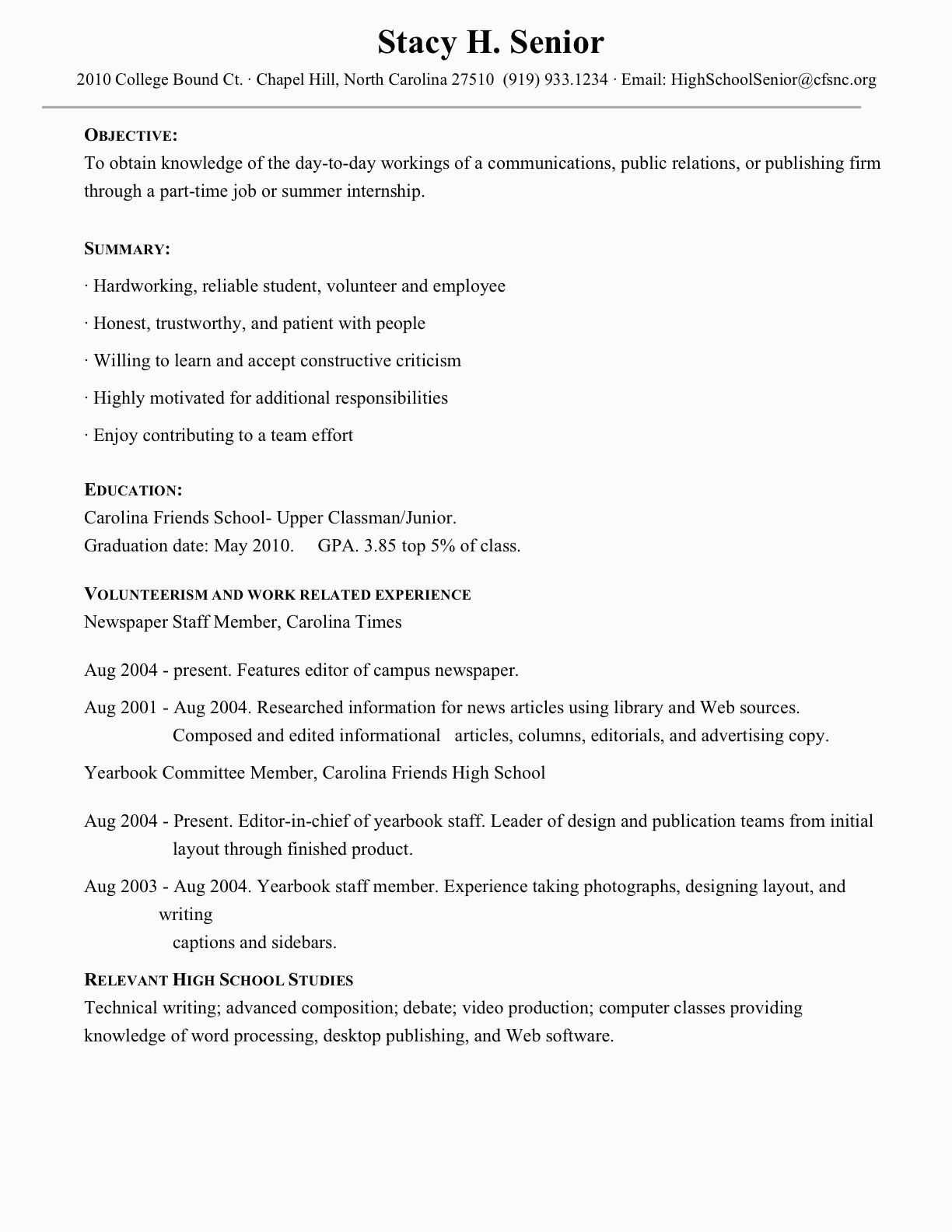 Taking into account you are searching for the absolute job, you will of course want to put your best foot adopt bearing in mind an impressive and well-formatted resume. One pretentiousness of assuring that you have such a resume is to download a sample college resume for high school seniors. These templates can provide you as soon as the perfect resume you are looking for or usefully use them as a guide to create your own.