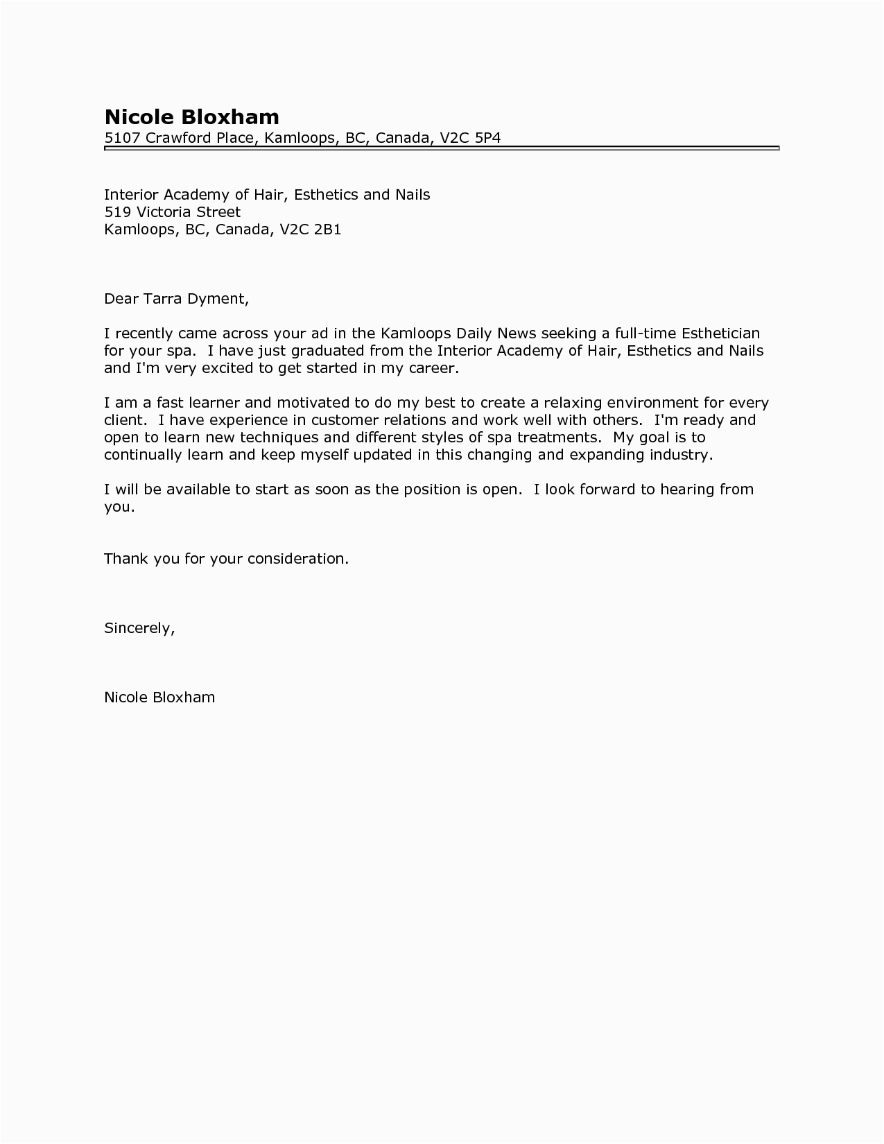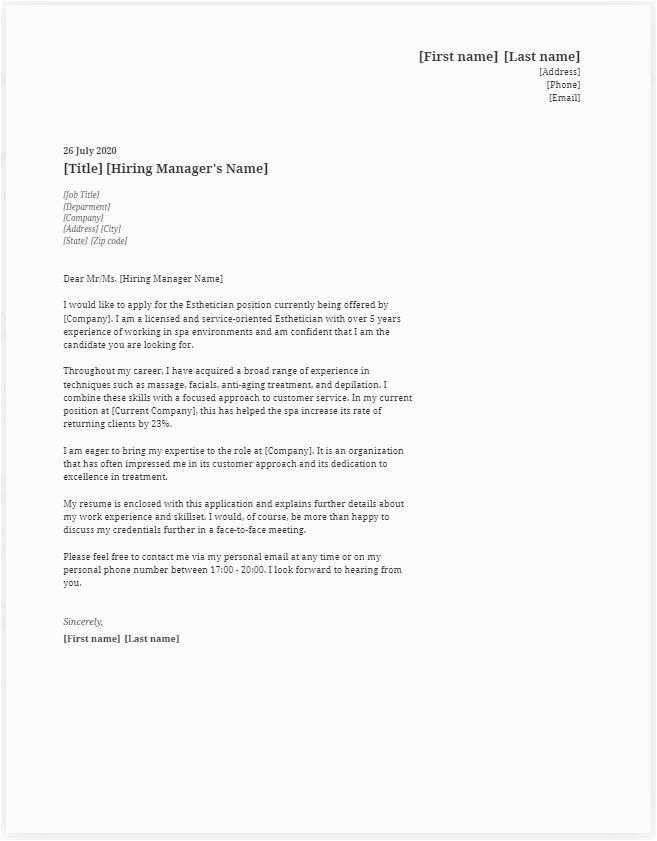 9 photos of the Sample Cover Letter for Esthetician Resume