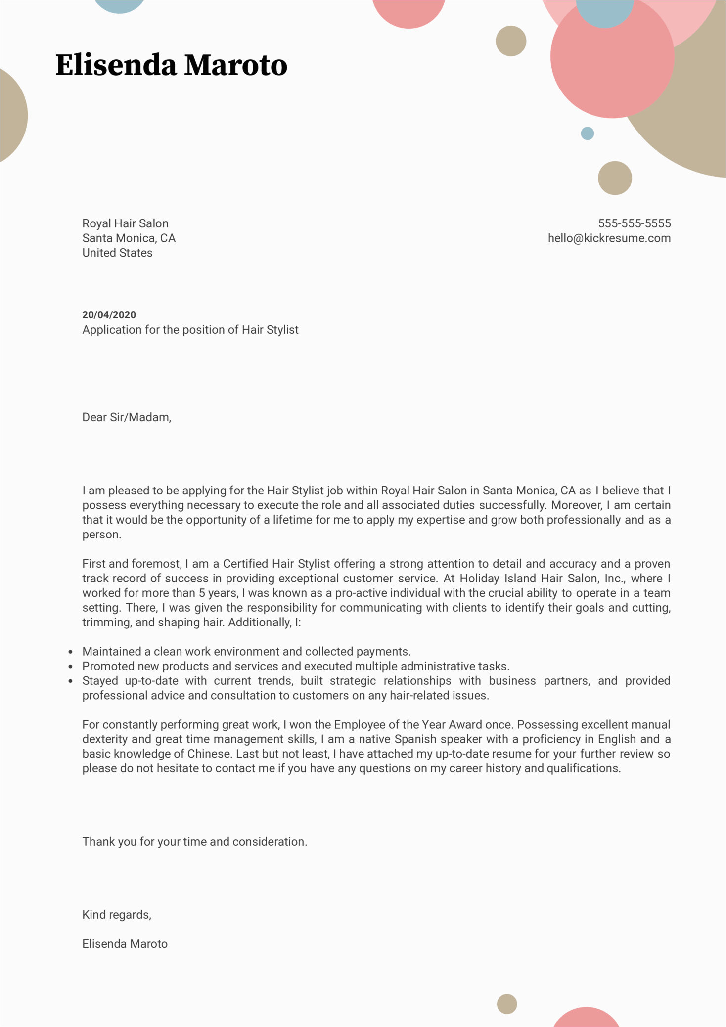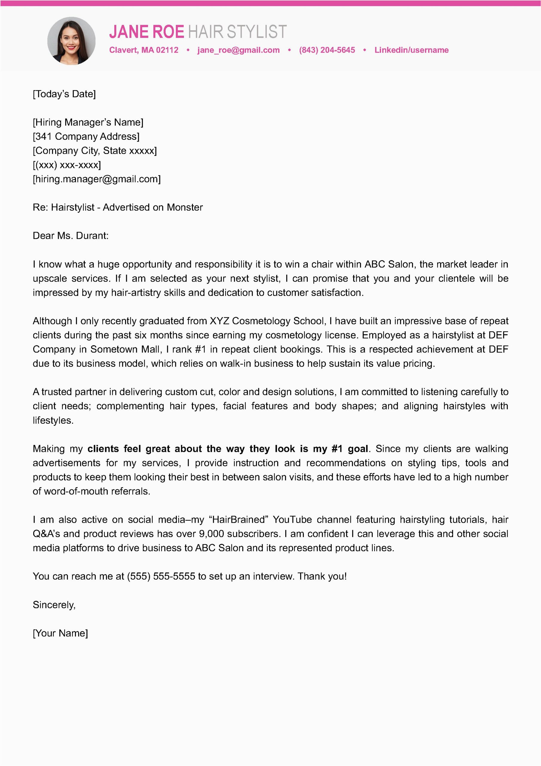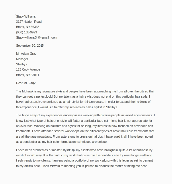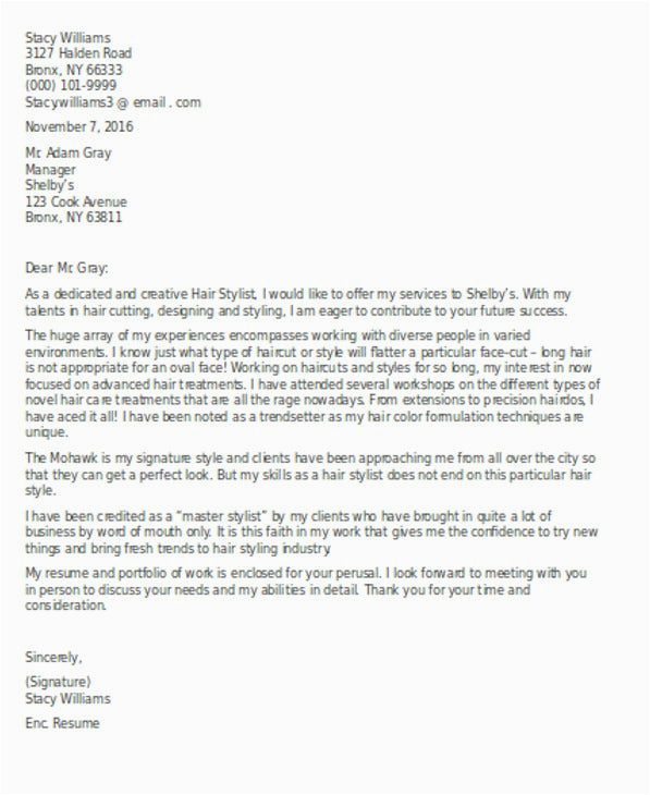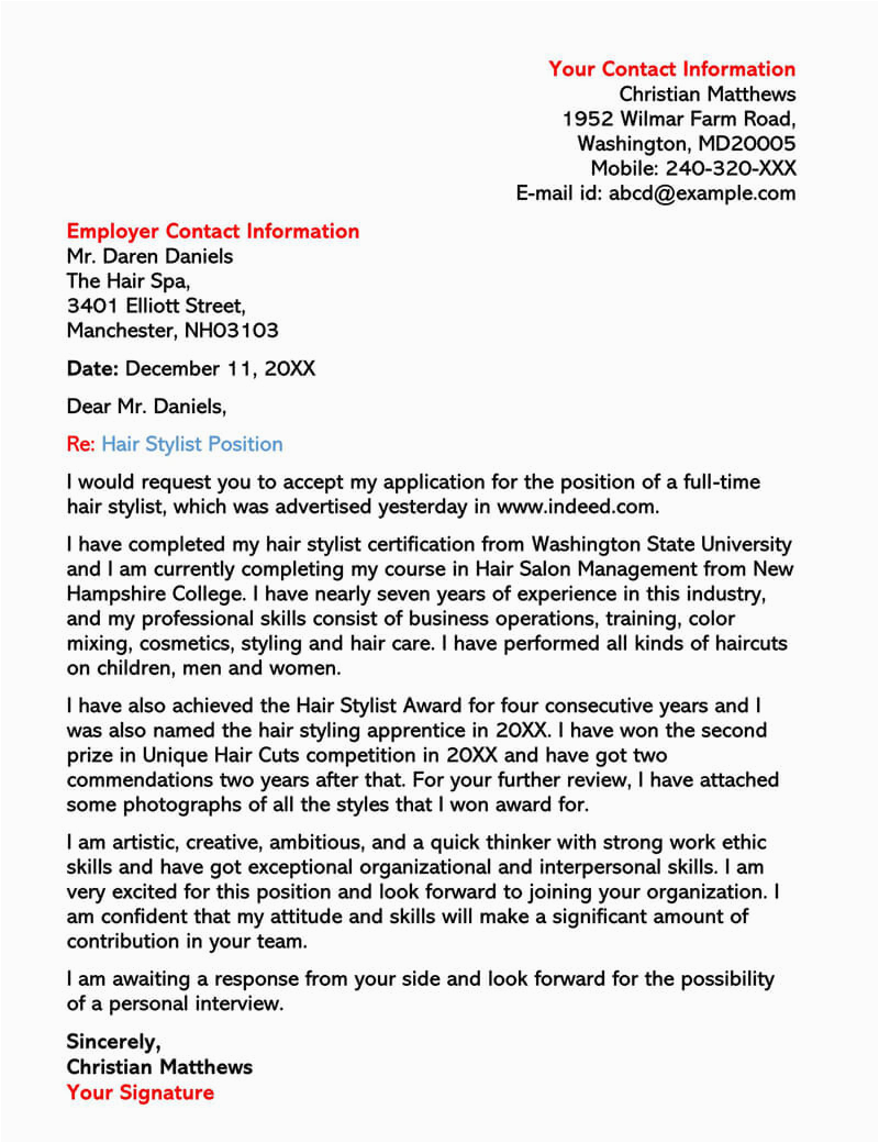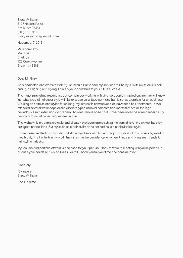 9 photos of the Sample Cover Letter for Hair Stylist Resume