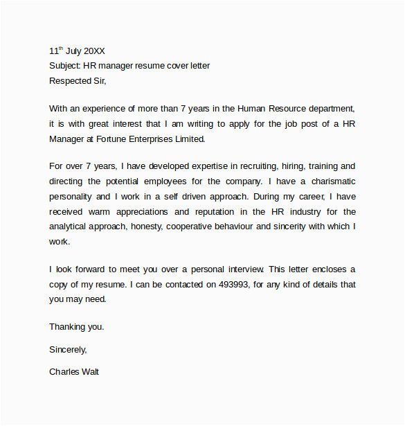 9 photos of the Sample Cover Letter for Hr Manager Resume