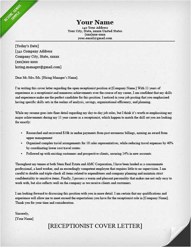 And for every website you come across that has a Sample Cover Letter for Resume Receptionist, you will find that there are specialized templates for just very nearly any type of resume you wish to create. You can locate a Sample Cover Letter for Resume Receptionist for an entry-level position, and you can locate a template for just just about any type of job or career you are looking for.