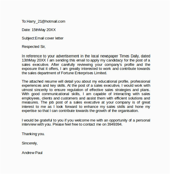 9 photos of the Sample Cover Letter for Sending Resume Via Email