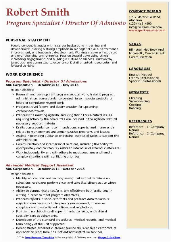 However, these are not your without help options for locating sample federal resume for program specialist. Your school or university circles will most assuredly have more than one resume template that you can use, and will be glad to incite you. understandably head higher than to their Placement Office and you will have a template in no time. After all, it is their job to put up to you find employment, and with you are well-to-do and a satisfied and expediently employed former student, it is after that a feather in their cap.