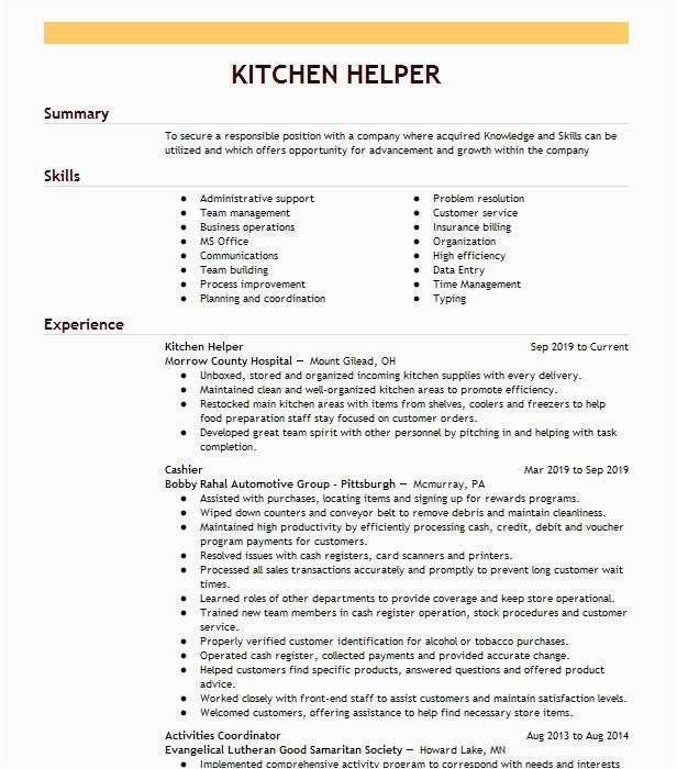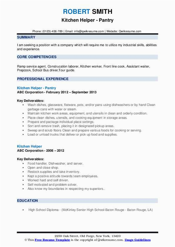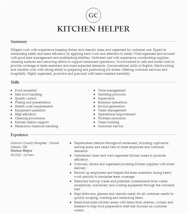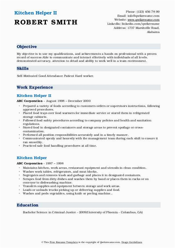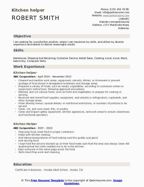 Sample for A Resume for Kitchen Help Kitchen Helper Resume Samples and all other pictures, designs or photos on our website are copyright of their respective owners. we get our pictures from another websites, search engines and other sources to use as an inspiration for you. please contact us if you think we are infringing copyright of your pictures using contact page. we will be very happy to help you.