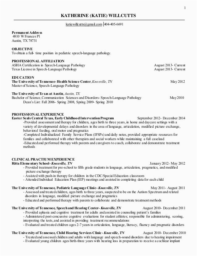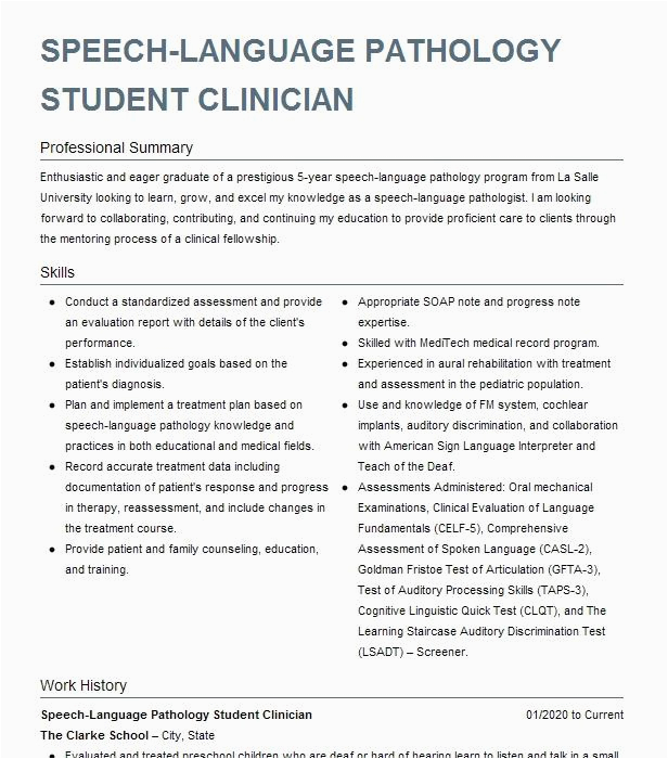9 photos of the Sample Graduate School Resume Speech Language Pathology