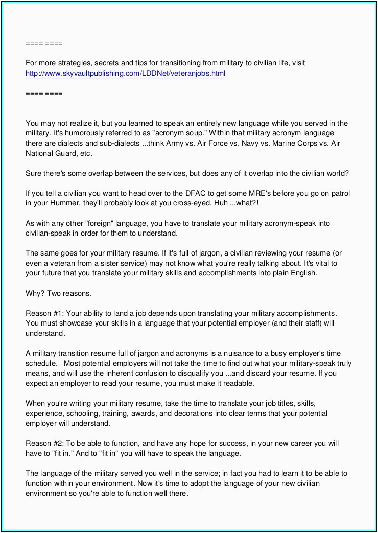 You could furthermore download a template from the Internet; there are an abundance of websites where you will be able to locate a sample military to civilian transition resume, either to handily peruse or to download and use.