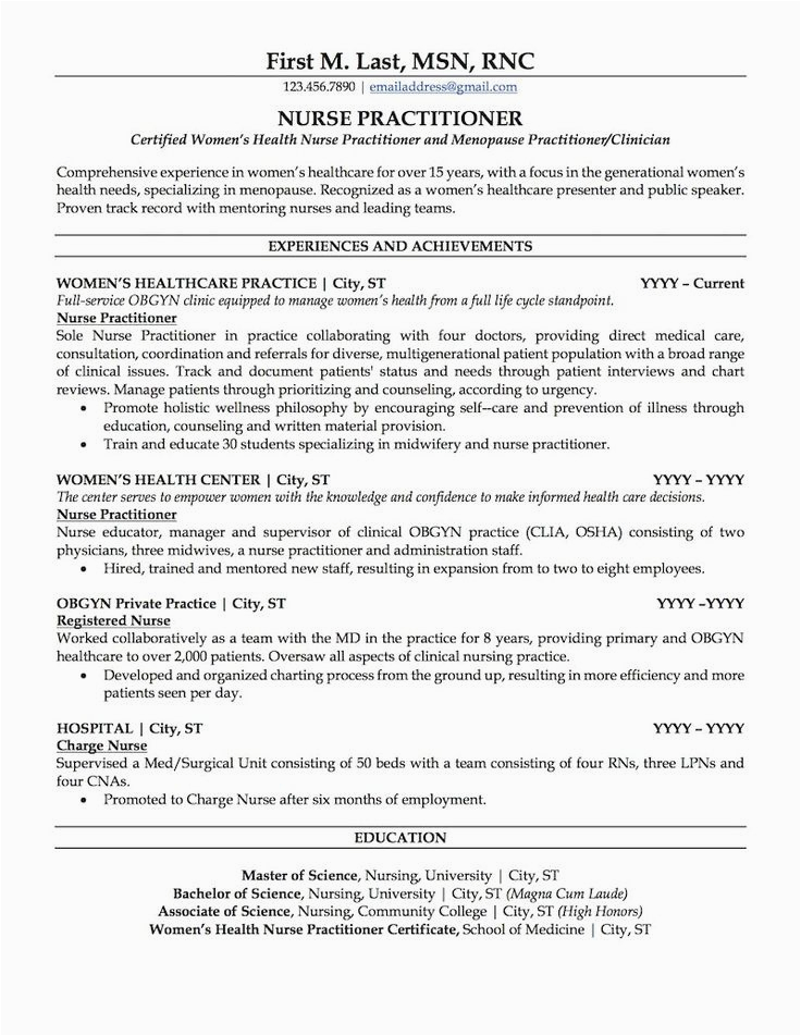 You could as well as download a template from the Internet; there are an abundance of websites where you will be able to find a sample nurse practitioner resume new graduate, either to simply peruse or to download and use.