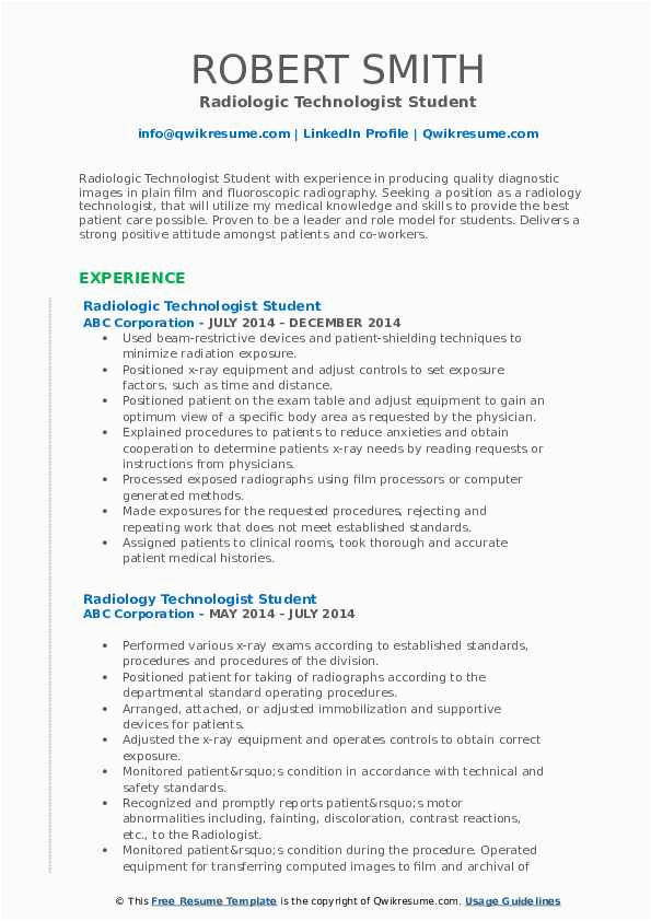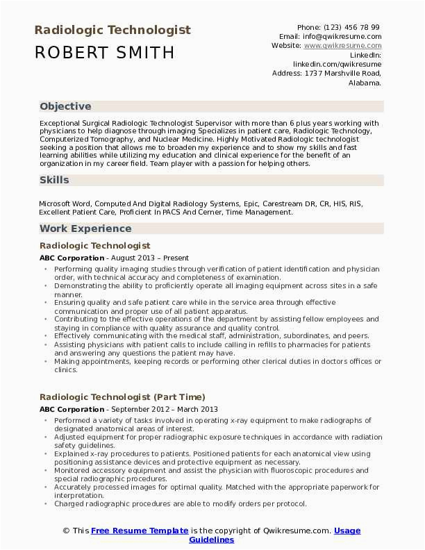 as soon as you are searching for the absolute job, you will of course desire to put your best foot forward taking into account an fabulous and well-formatted resume. One habit of assuring that you have such a resume is to download a sample objectives in resume for radiologic technologist. These templates can offer you in the same way as the true resume you are looking for or understandably use them as a lead to create your own.