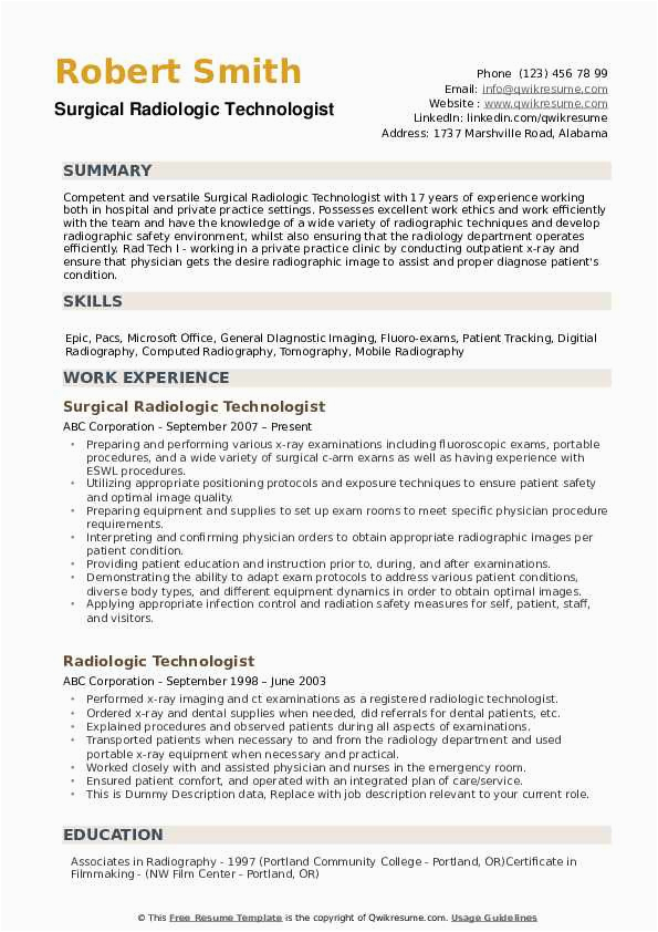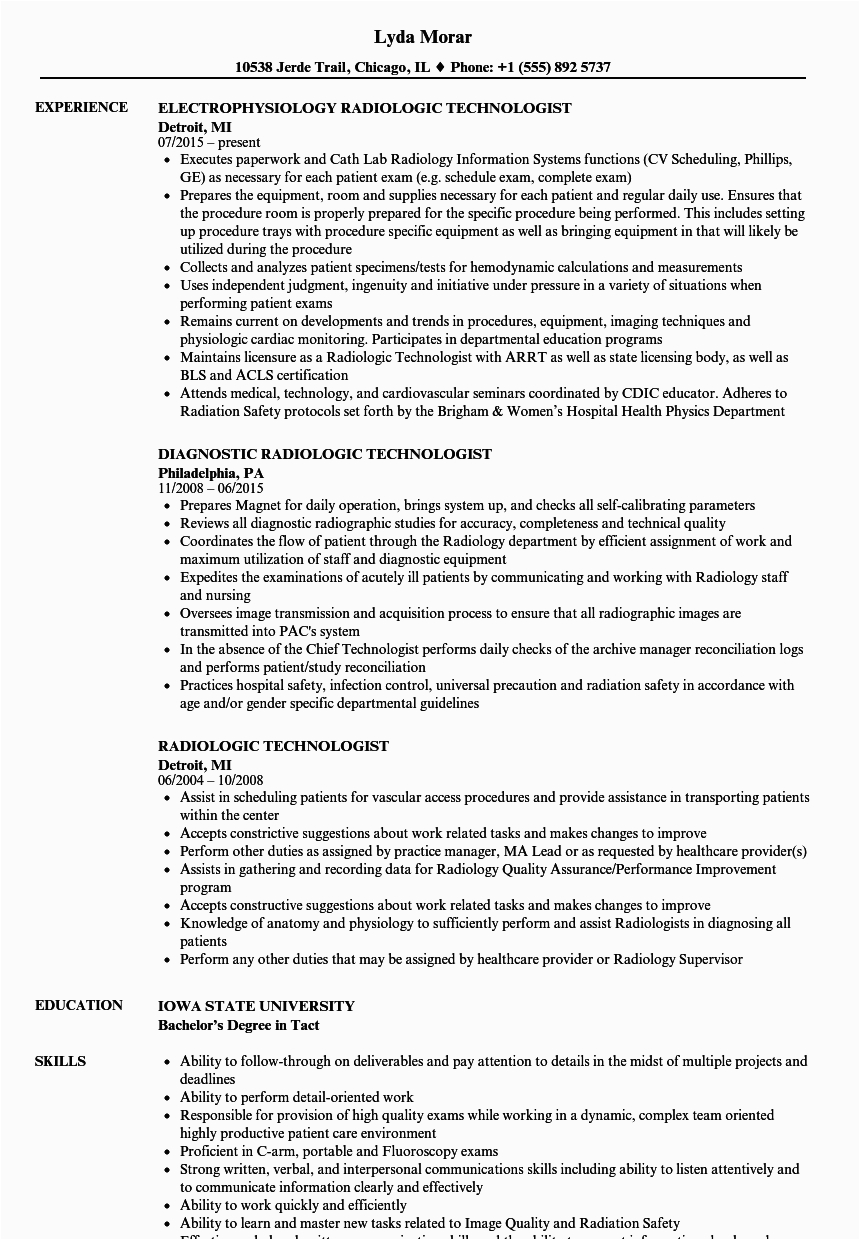 However, these are not your lonely options for locating sample objectives in resume for radiologic technologist. Your hypothetical or the academy will most assuredly have more than one resume template that you can use, and will be glad to assist you. simply head beyond to their Placement Office and you will have a template in no time. After all, it is their job to help you locate employment, and gone you are affluent and a satisfied and valuably employed former student, it is moreover a feather in their cap.