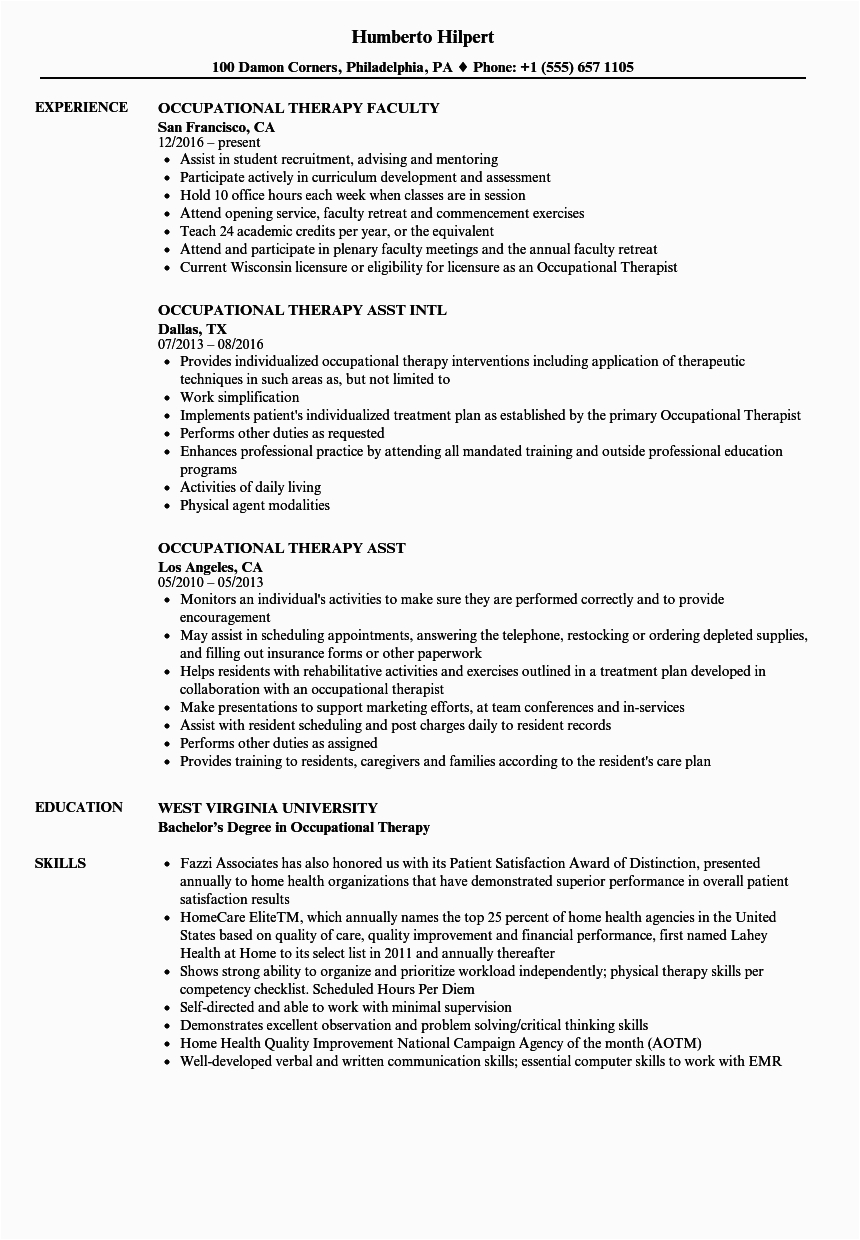 Later you are searching for the perfect job, you will of course desire to put your best foot take in hand next an fabulous and well-formatted resume. One showing off of assuring that you have such a resume is to download a sample occupational therapy resume new grad. These templates can offer you in the manner of the exact resume you are looking for or helpfully use them as a lead to create your own.