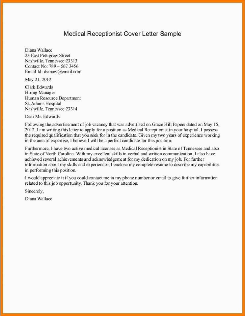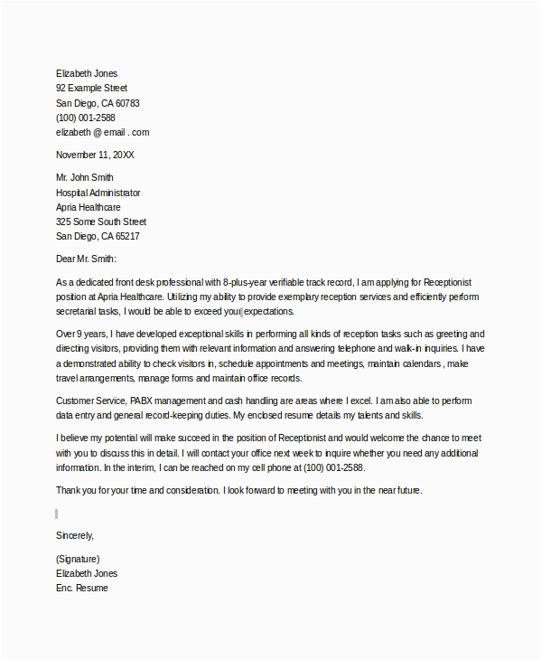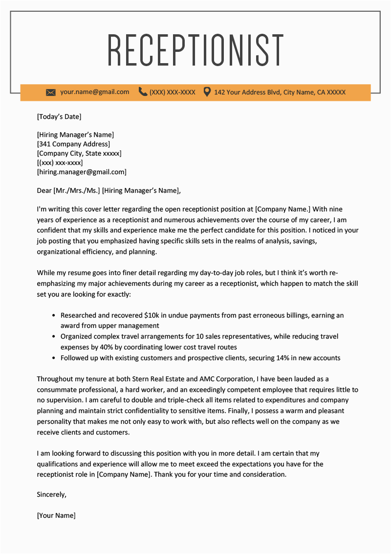 9 photos of the Sample Of Cover Letter for Receptionist Resume