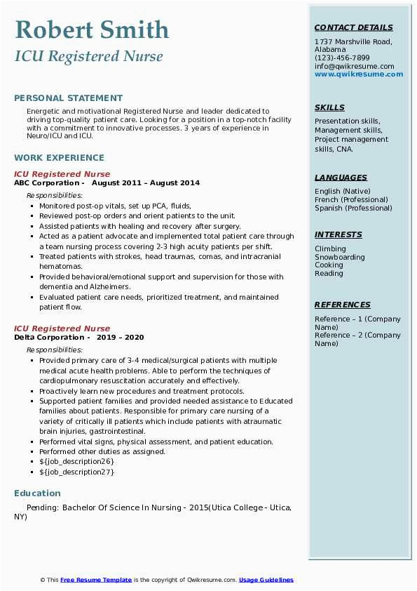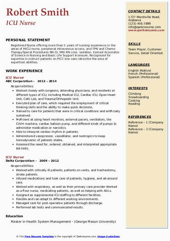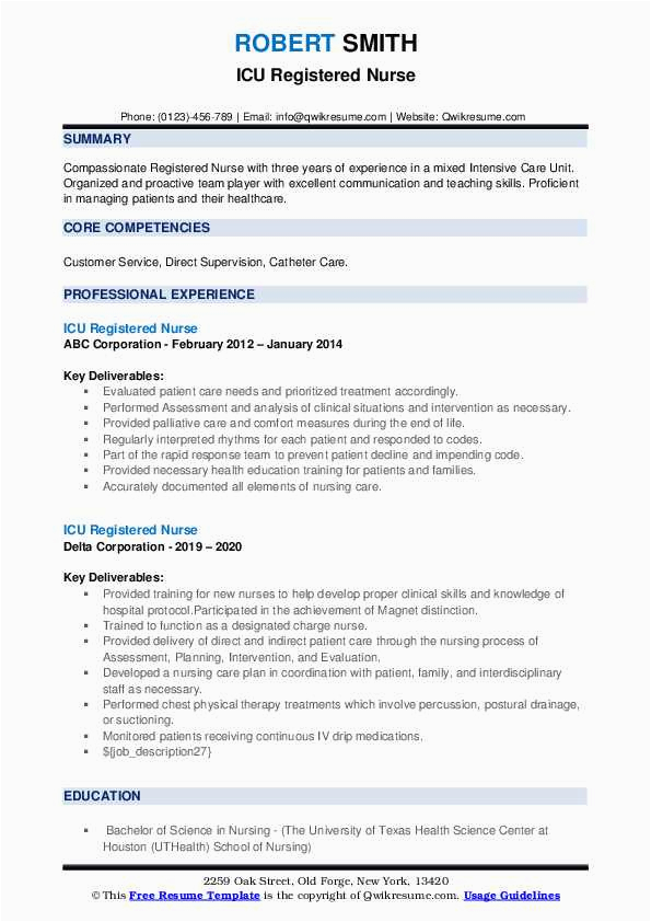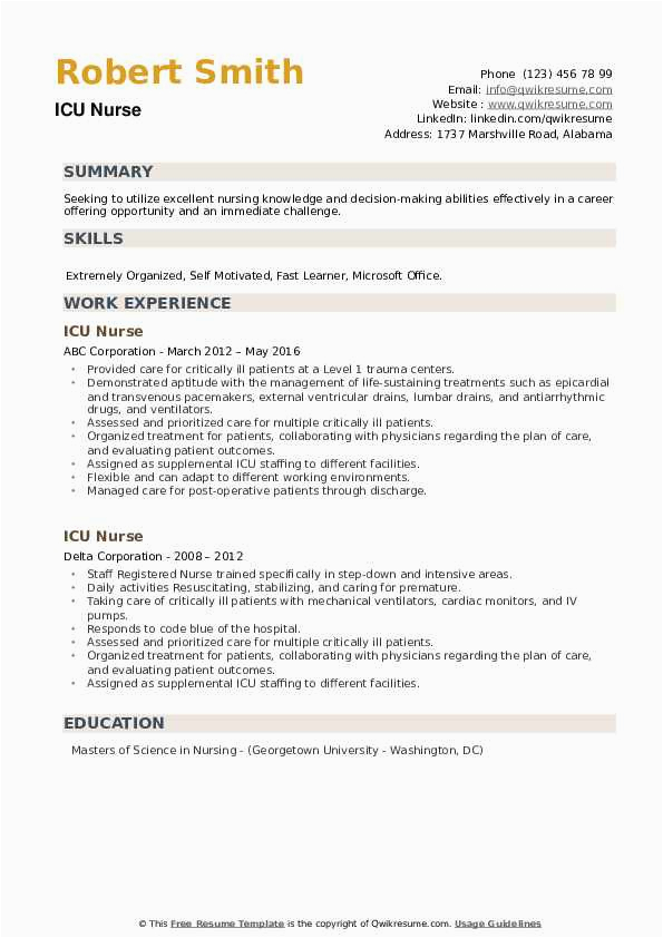 9 photos of the Sample Of Experienced Icu Nurse Resume