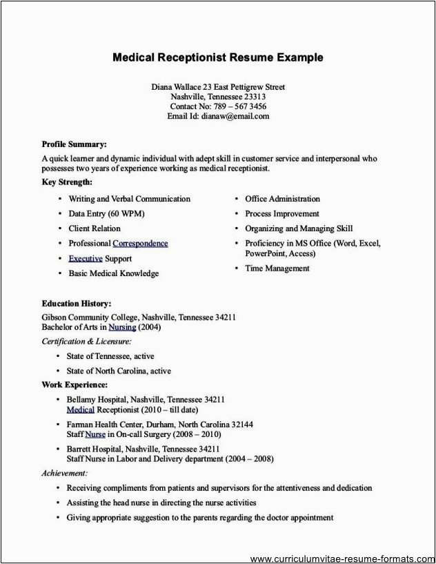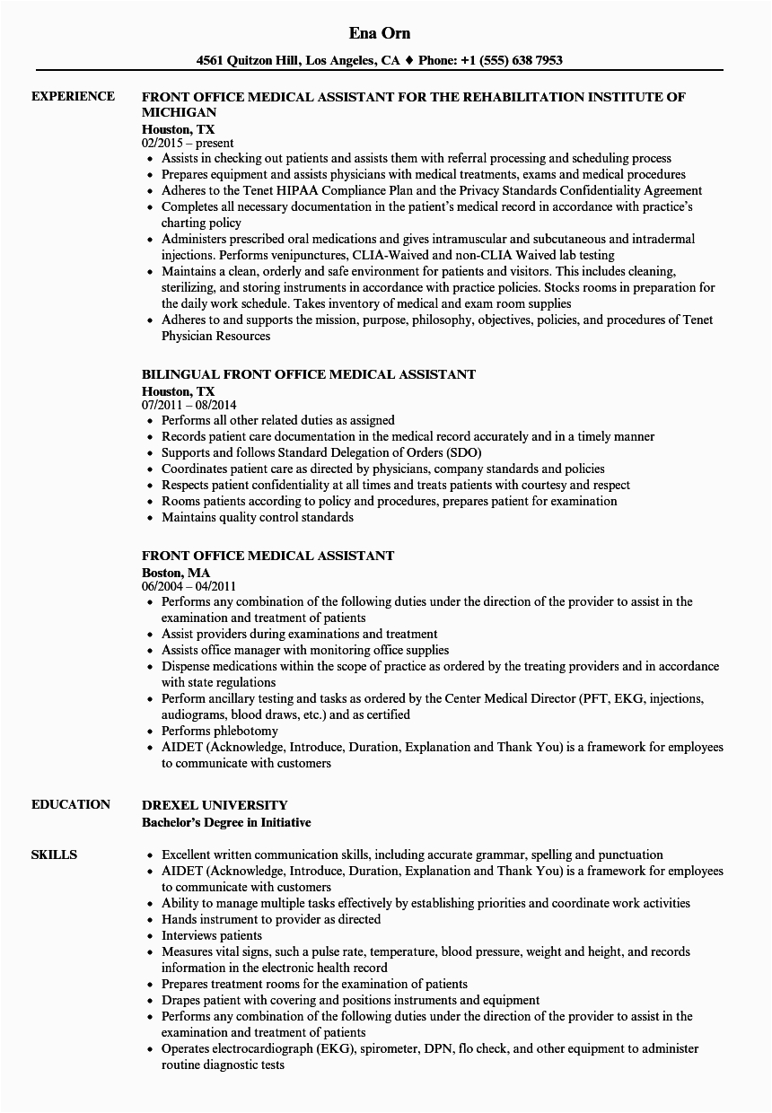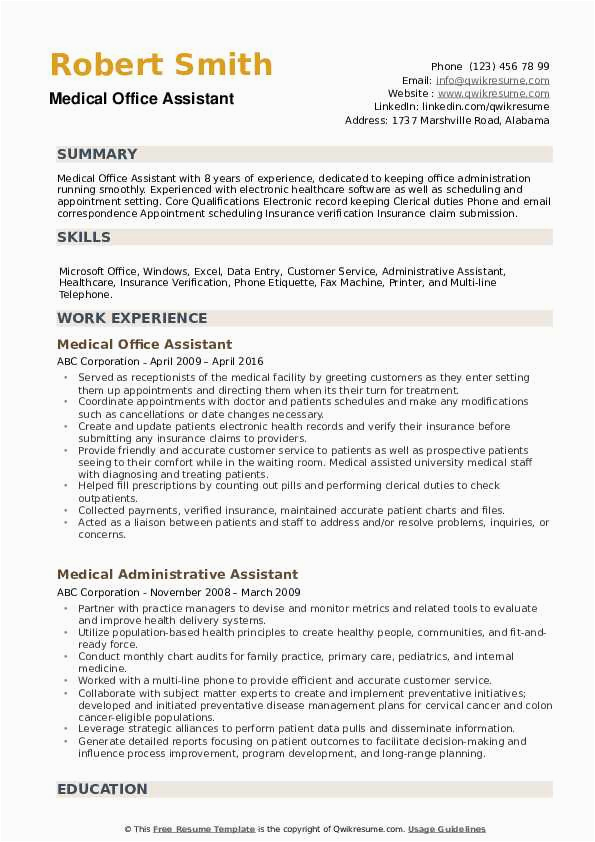 Afterward you are searching for the perfect job, you will of course want to put your best foot direct next an fabulous and well-formatted resume. One way of assuring that you have such a resume is to download a sample of medical office assistant resume. These templates can offer you taking into account the perfect resume you are looking for or suitably use them as a lead to make your own.