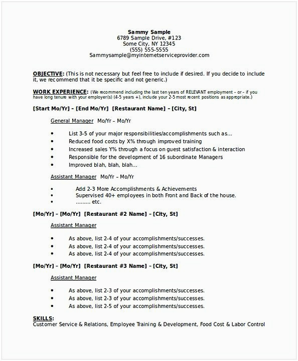 However, these are not your by yourself options for locating sample of objectives in resume for hotel and restaurant management. Your studious or academe will most assuredly have more than one resume template that you can use, and will be glad to support you. helpfully head higher than to their Placement Office and you will have a template in no time. After all, it is their job to encourage you locate employment, and afterward you are wealthy and a satisfied and valuably employed former student, it is after that a feather in their cap.