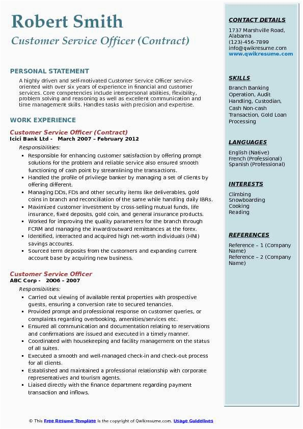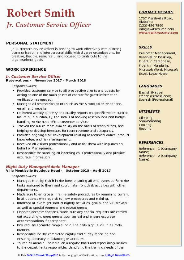 9 photos of the Sample Of Resume for Customer Service Officer