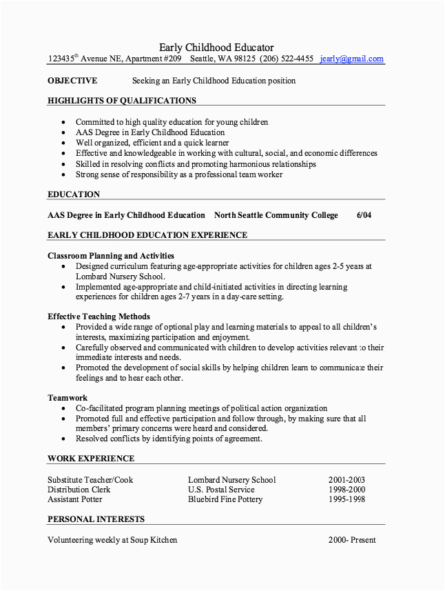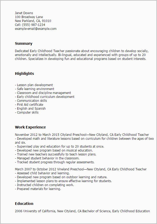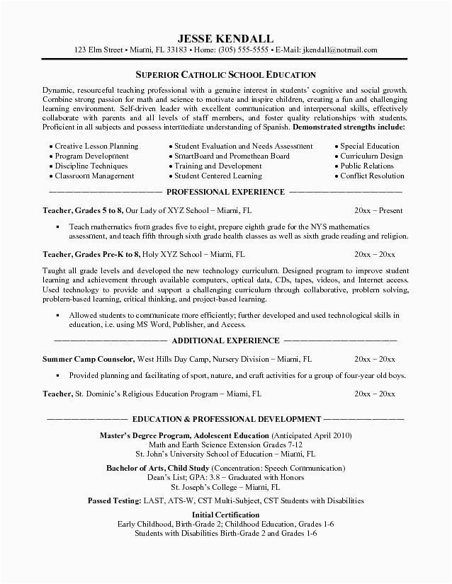 9 photos of the Sample Of Resume for Early Childhood Teacher In Catholic School