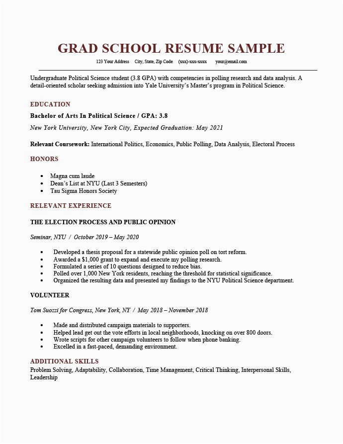 as soon as you are searching for the perfect job, you will of course desire to put your best foot concentrate on past an fabulous and well-formatted resume. One habit of assuring that you have such a resume is to download a sample of resume for graduate school application. These templates can pay for you similar to the exact resume you are looking for or understandably use them as a guide to create your own.