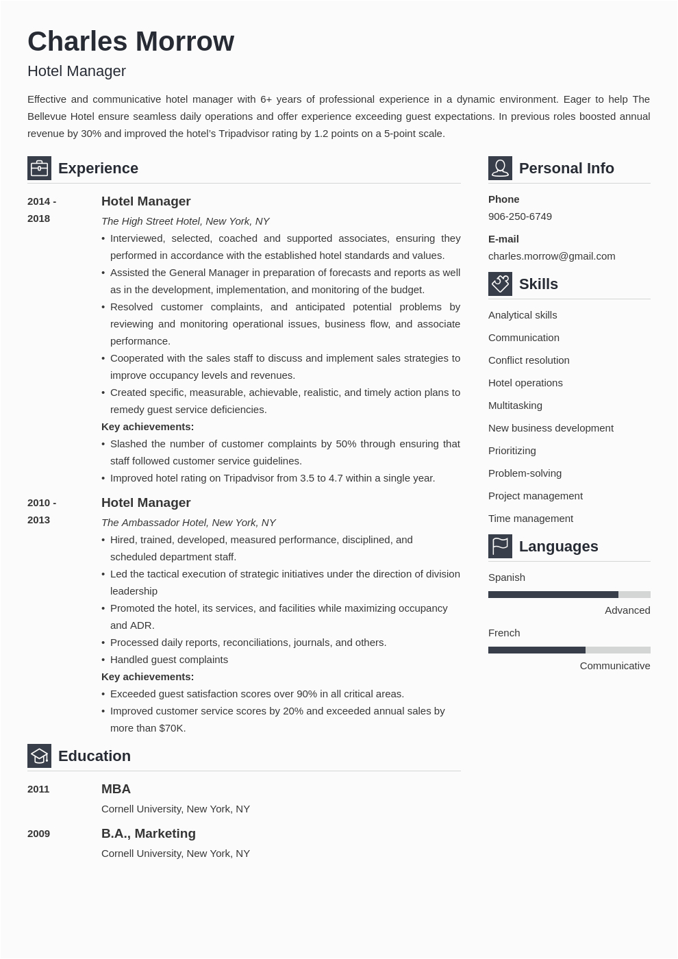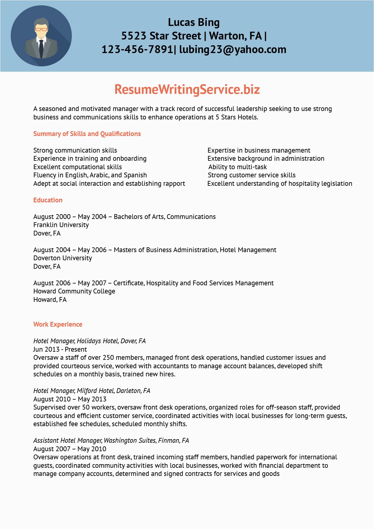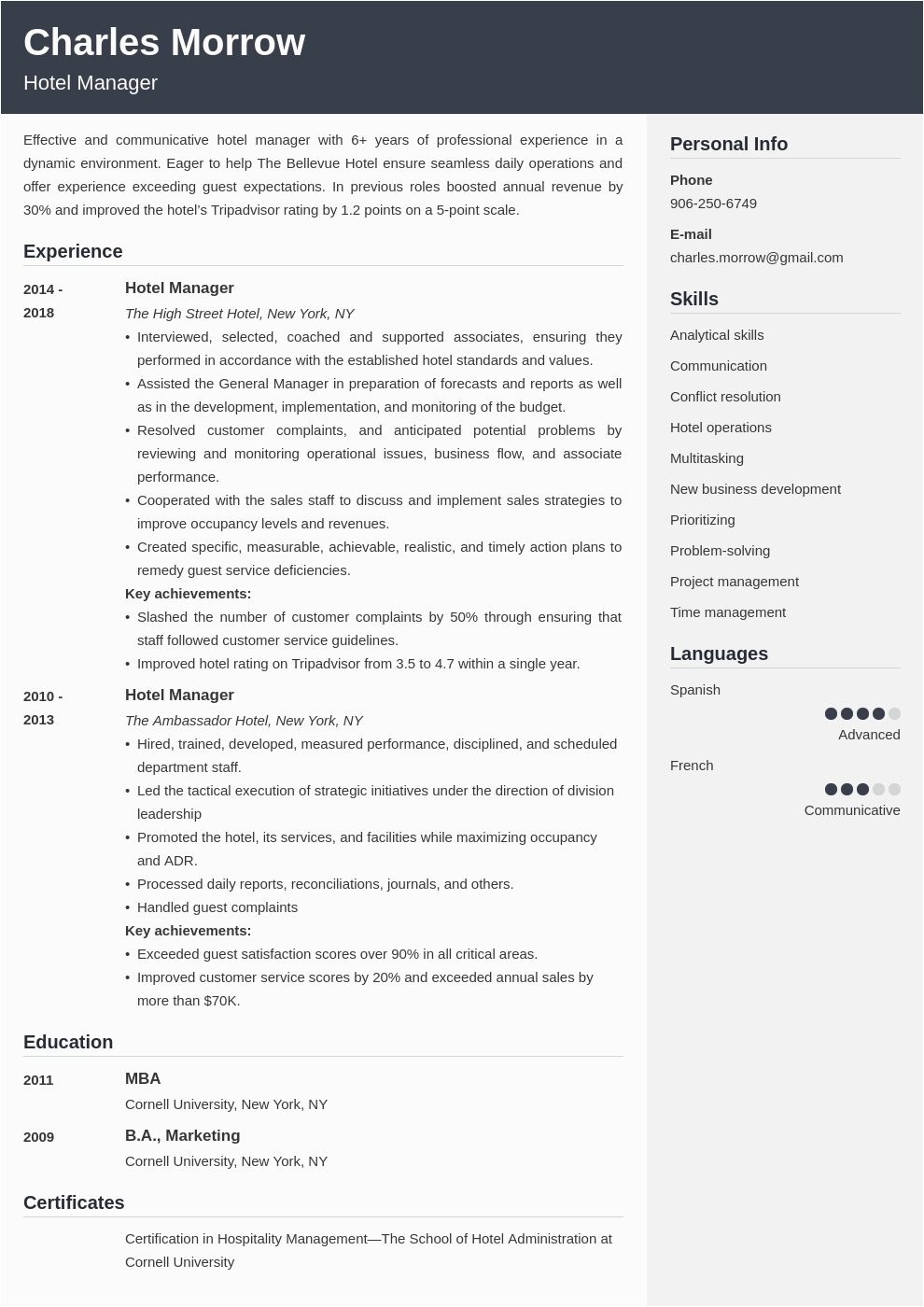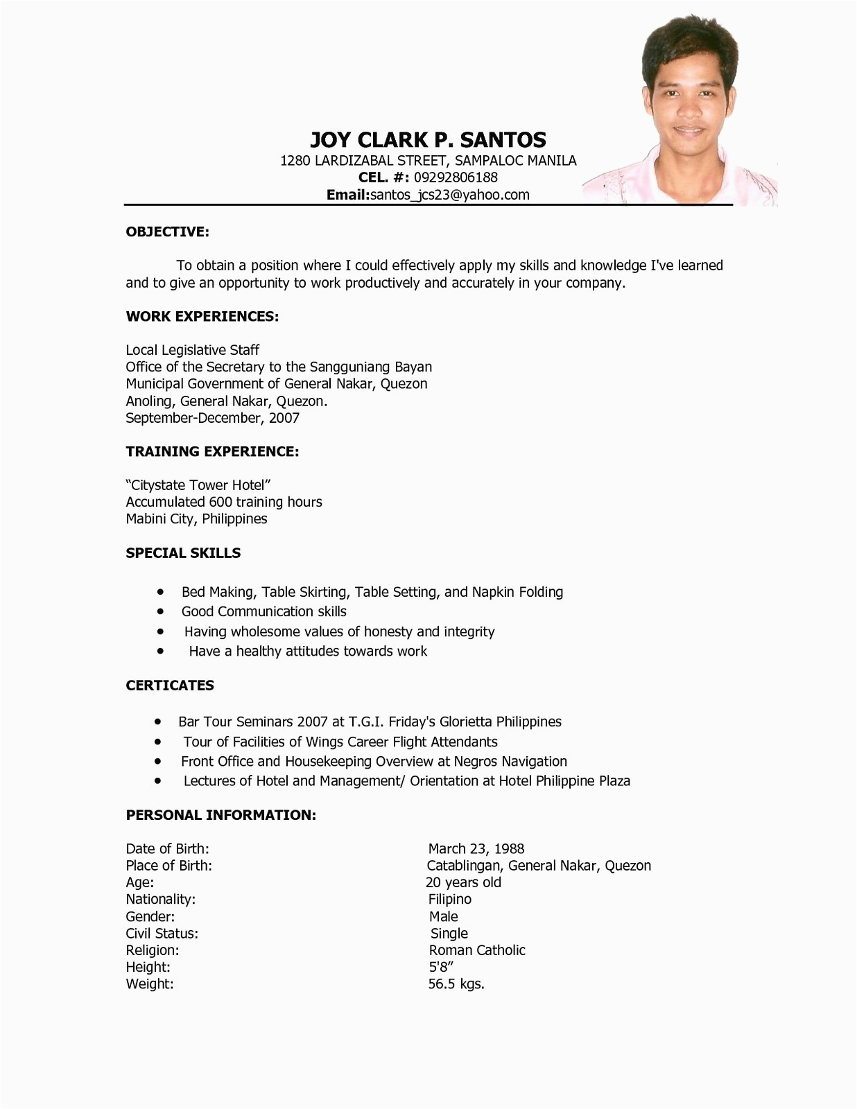 9 photos of the Sample Of Resume for Hotel Management