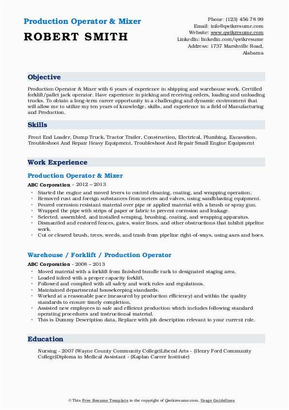 Sample Of Resume for Production Operator Production Operator Resume Example Chrysler Llc Detroit Michigan and all other pictures, designs or photos on our website are copyright of their respective owners. we get our pictures from another websites, search engines and other sources to use as an inspiration for you. please contact us if you think we are infringing copyright of your pictures using contact page. we will be very happy to help you.