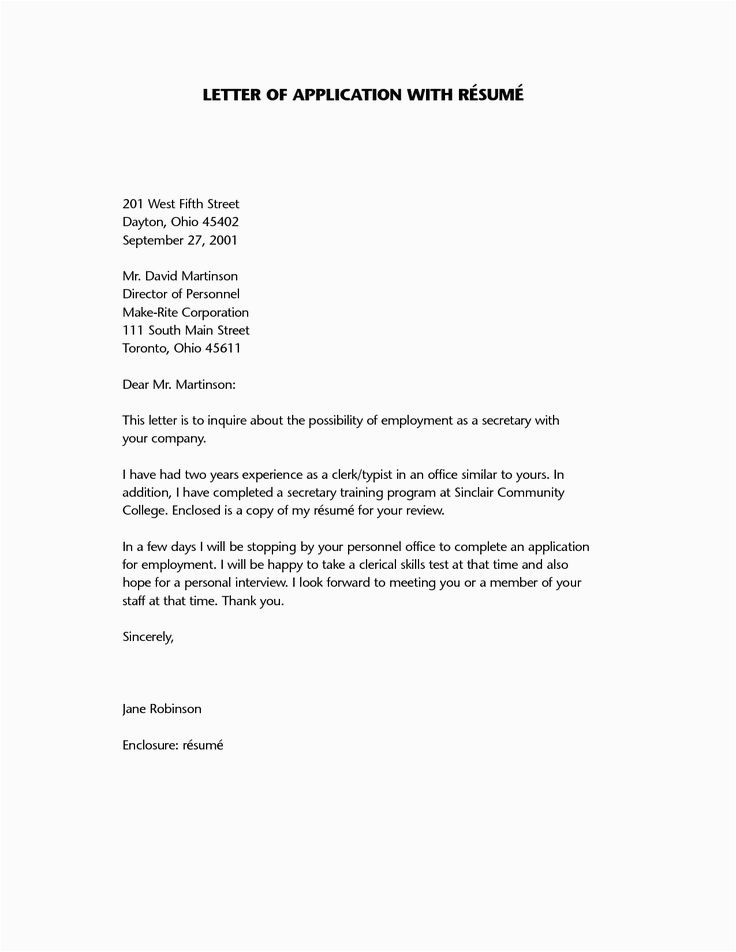 Sample Of Resume Letter for Job Application Application Letter for Resume with Images