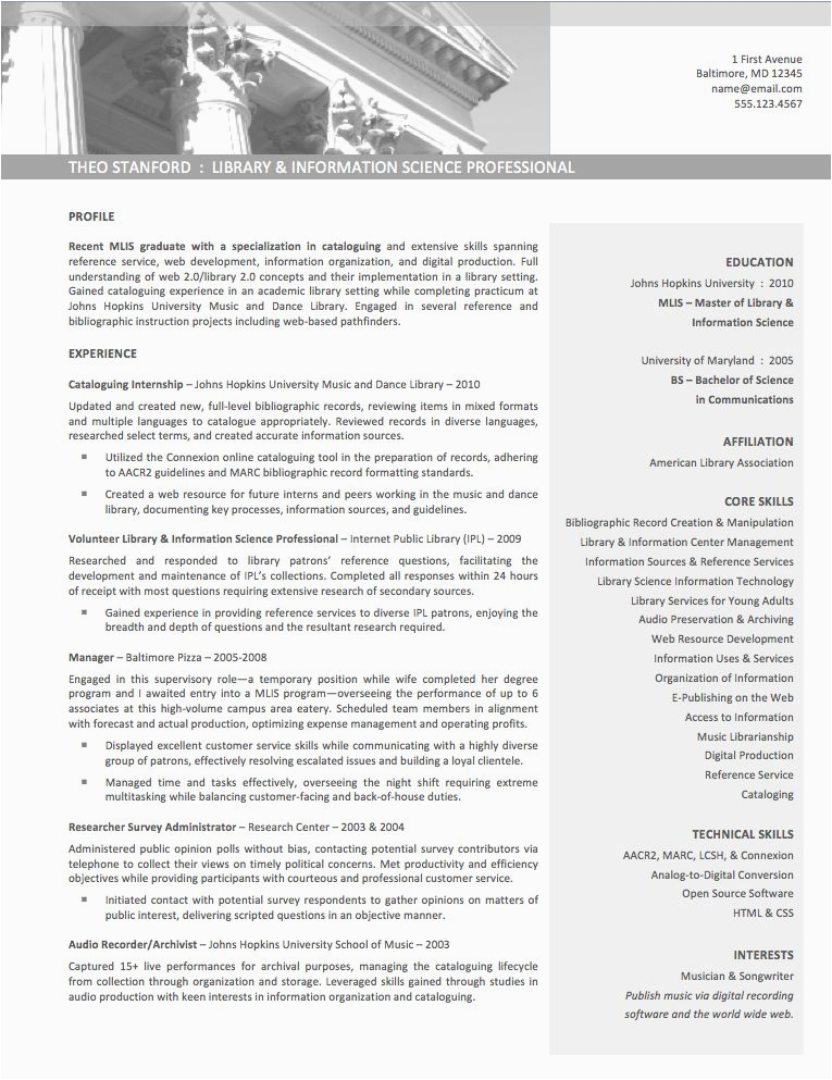 Sample Professional Profiles for Public Librarian Resume Library Science Candidate and all other pictures, designs or photos on our website are copyright of their respective owners. we get our pictures from another websites, search engines and other sources to use as an inspiration for you. please contact us if you think we are infringing copyright of your pictures using contact page. we will be very happy to help you.