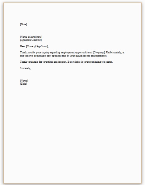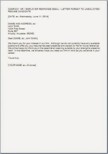 9 photos of the Sample Rejection Letter for Unsolicited Resume