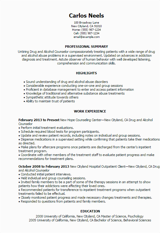 9 photos of the Sample Resume Cover Letter for A Substance Abuse Counselor