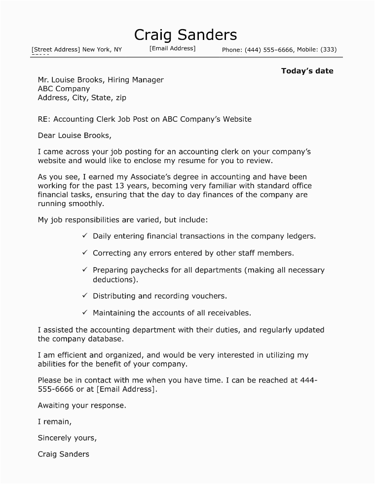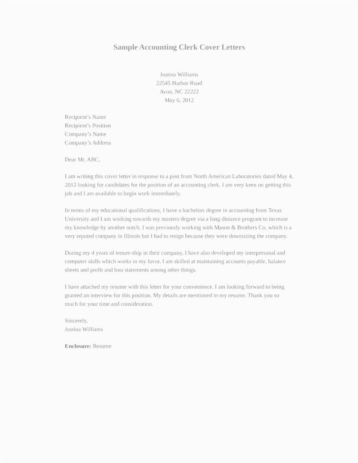 9 photos of the Sample Resume Cover Letter for Accounting Clerk