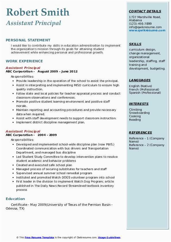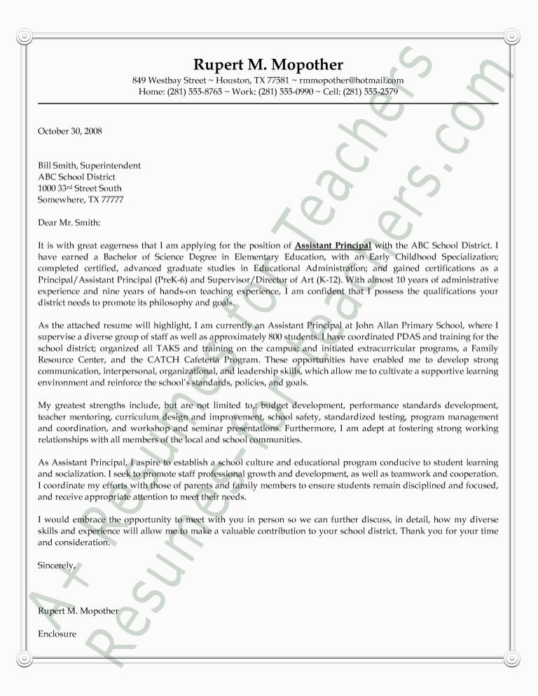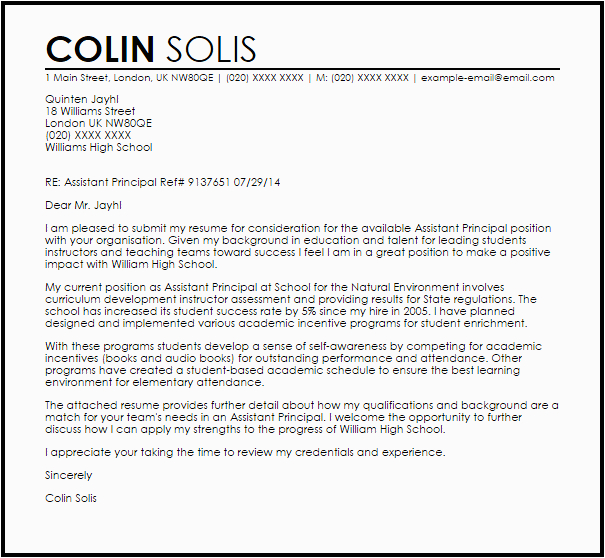 9 photos of the Sample Resume Cover Letter for assistant Principal