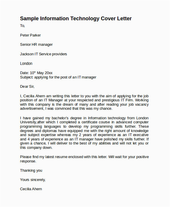 Sample Resume Cover Letter for Information Technology Free 10 Sample Information Technology Cover Letter Templates In Pdf and all other pictures, designs or photos on our website are copyright of their respective owners. we get our pictures from another websites, search engines and other sources to use as an inspiration for you. please contact us if you think we are infringing copyright of your pictures using contact page. we will be very happy to help you.