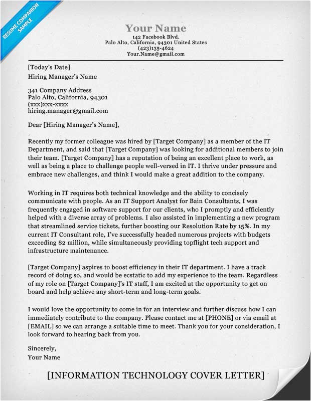Back To Sample Resume Cover Letter for Information Technology